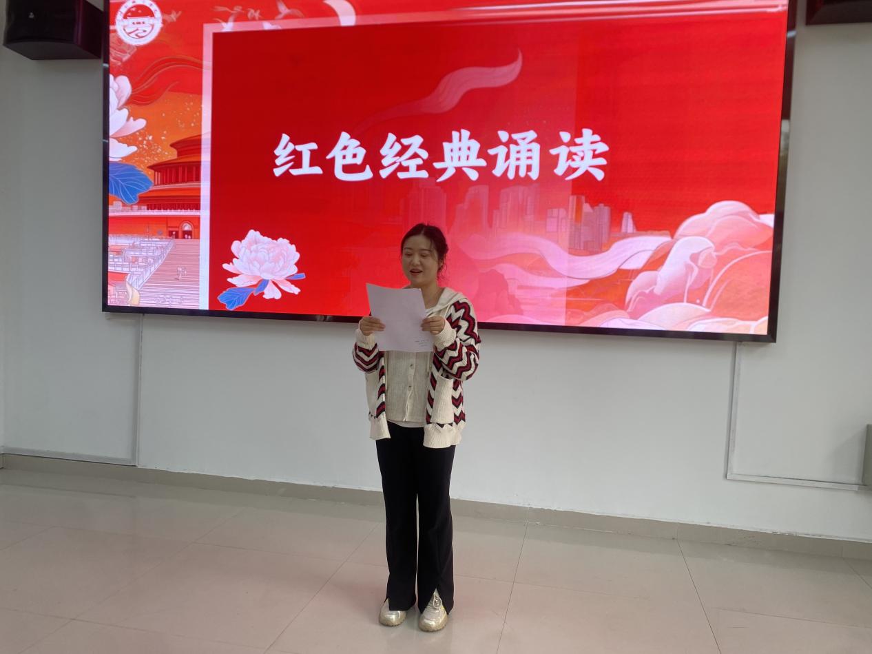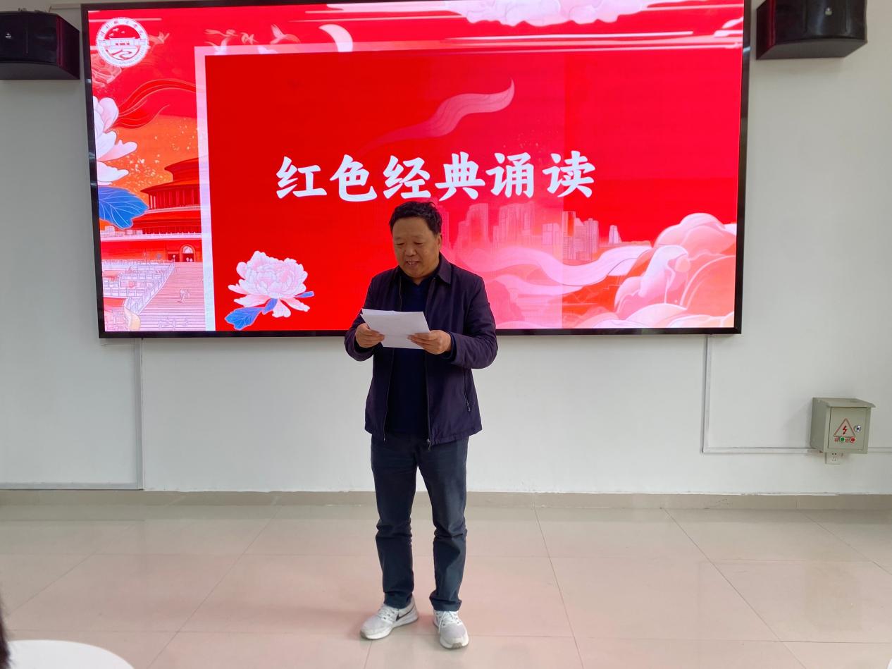 随后,红色经典诵读环节正式开始。在庄重而深情的背景音乐中,党员教师们依次登台,满怀敬意地朗读了精心准备的诵读材料。大家深情演绎了《焦裕禄日记》节选,字里行间流淌着对人民的赤诚;动情讲述了开封战役英烈吴玉征用步枪击落敌机的壮举,令人热血沸腾;真切还原了革命烈士李鸣岐“革命不怕死”的临刑呐喊,震撼人心;也重温了工人运动领袖胡万杰“工人阶级的力量是打不倒的”铮铮誓言。一篇篇饱含深情的诵读,带领全体教师穿越时空,共同追忆那段波澜壮阔的红色历史,感悟共产党人坚定的理想信念和深厚的家国情怀。