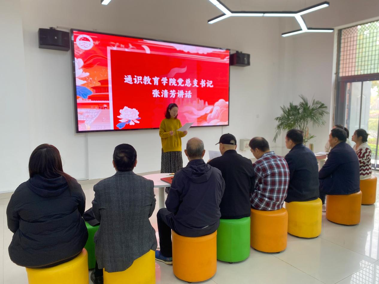 为深挖开封本土红色资源,推动党史学习教育融入立德树人实践,2025年10月31日下午,通识教育学院党总支在国际交流中心大厅举行“诵汴梁红色经典,践育人初心使命”主题党日活动。本次活动由学院党总支书记张清芳主持,全体党员教师参加。