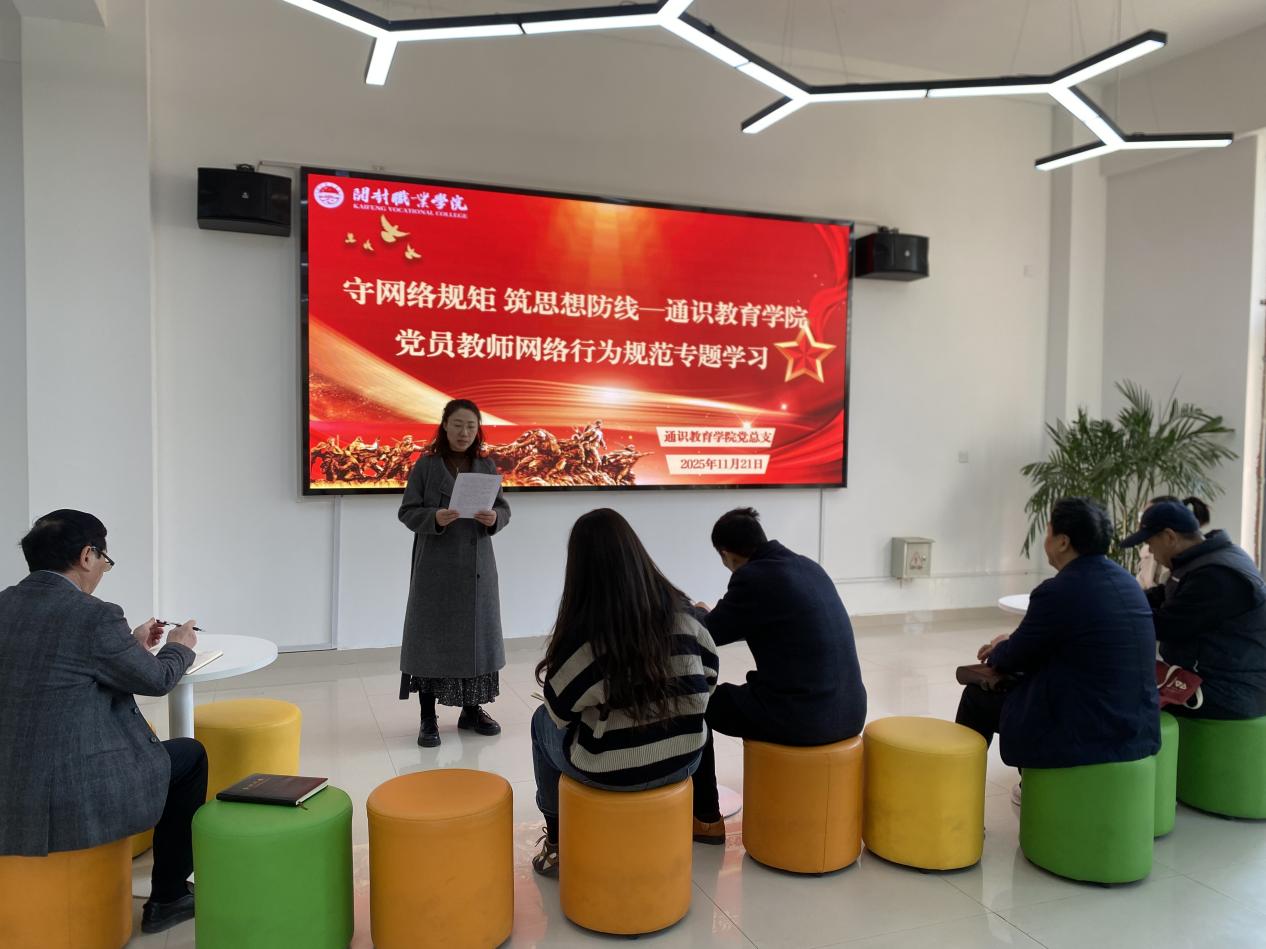 为深入贯彻落实全面从严治党要求,切实规范党员教师网络言行,筑牢校园意识形态安全防线,11月21日下午,通识教育学院党总支在国际交流中心大厅举办“守网络规矩 筑思想防线”党员教师网络行为规范专题学习会。会议由党总支书记张清芳主持,学院全体党员教师参加。