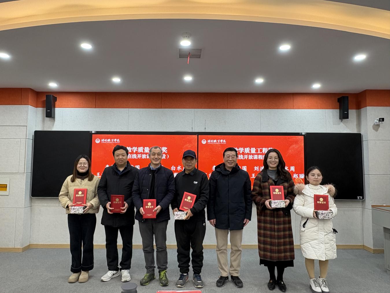 本次大会共设立“教学质量优秀教师奖”“教学质量工程奖——在线开放课程建设”“科研进步奖”“教学竞赛奖”“‘SG星火小组’优秀导师奖”“优秀指导老师奖”六大类荣誉,涵盖教学、科研、师资培养、学生指导等多个核心工作领域。其中,6名教师获评“教学质量优秀教师奖”,2个团队共9人斩获“教学质量工程奖——在线开放课程建设”表彰,1名教师荣获“科研进步奖”,2名教师凭借优异表现拿下“教学竞赛奖”,1名教师获评“‘SG星火小组’优秀导师奖”,另有5名教师获授“优秀指导老师奖”。获奖教师依次登台领奖,一张张沉甸甸的奖状见证着教育工作者的智慧与汗水,一次次雷鸣般的掌声传递着全院上下对先进典型的敬意与认可,现场氛围庄重热烈、催人奋进。
