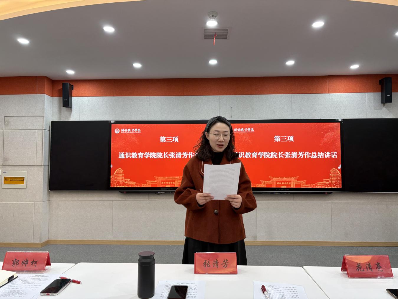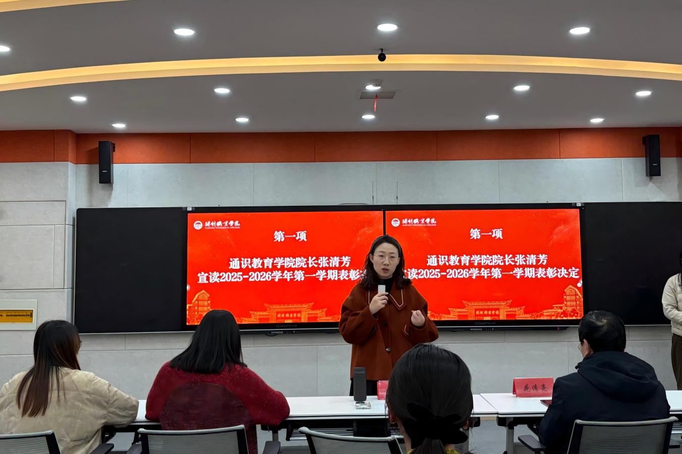 时光荏苒,岁物丰成。为全面总结学期工作,表彰先进典型,凝聚奋进力量,1月15日下午,通识教育学院在毕昇楼216教室隆重召开2025-2026学年第一学期期末总结表彰大会。学院全体教职工齐聚一堂,共同回顾耕耘足迹,展望崭新征程。大会由教学干事侯梦杰主持。