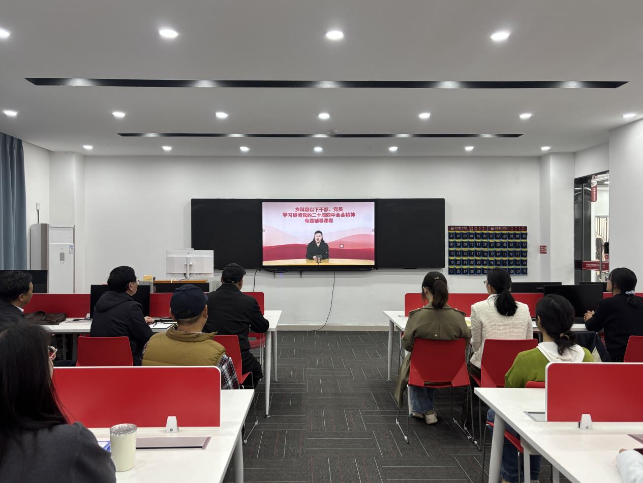 为深入学习贯彻党的二十届四中全会精神,切实把思想和行动统一到党中央决策部署上来,3月24日下午,通识教育学院党总支在毕昇楼217教室开展专题培训,组织全体党员教师集中学习”十五五”时期经济社会发展的指导思想、重大原则和根本保证相关课程。